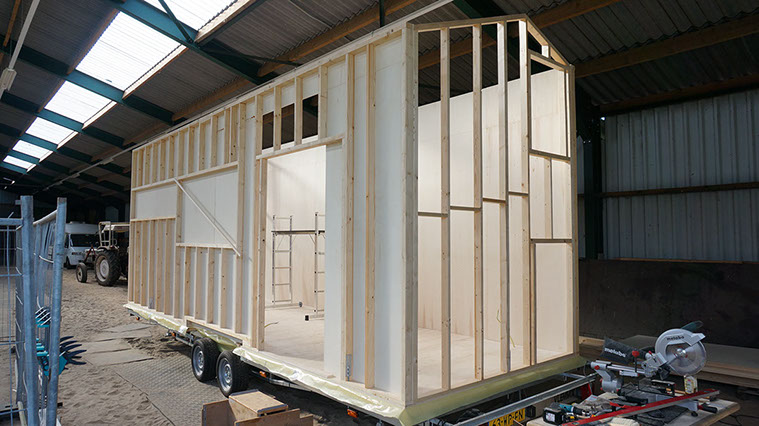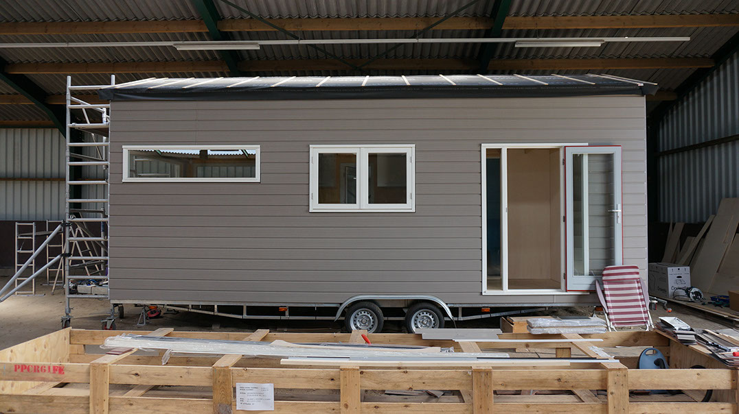 Ik heb nog geen concrete plannen om in mijn tiny house te gaan wonen, in ieder geval niet zo lang de wet nog niet zo ver is dat het mag, maar ik heb het wel woon- en off-gridklaar gebouwd. Dat wil zeggen: met eigen stroom en watervoorziening. Overigens wel met de mogelijkheid om aan te sluiten op het net. Ik zag het bouwen als een echte uitdaging want ik had namelijk nooit eerder wat gebouwd. Samen met vrienden en een beetje professionele hulp voor aanleggen van stroom, gas en water is het gelukt!