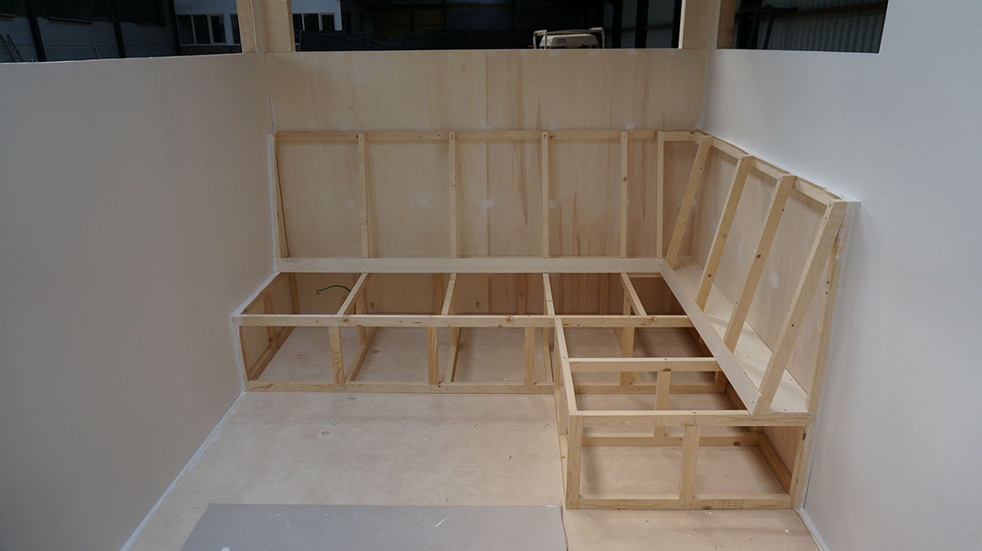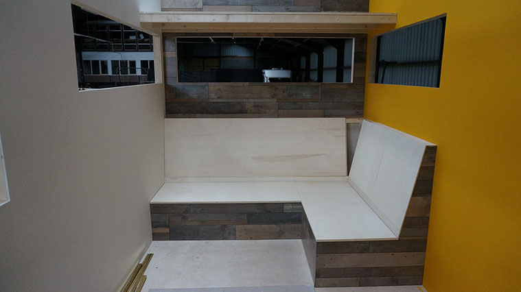 De lounge hoek is een van de dingen waar ik het meest blij mee ben. Niet alleen zitten de kussens heerlijk maar hij biedt ook een zee aan opbergruimte, zowel onder de zitting als achter de rugleuning! Ook ligt de stroominstallatie onder de bank. Op de rand achter de rugleuning kun je gemakkelijk je drinken neerzetten en bovendien zijn er 4 stopcontacten ingebouwd zodat je gemakkelijk je telefoon of laptop kunt inpluggen!